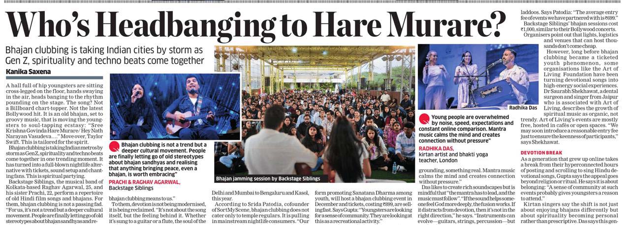 #backstagesiblings #jamming #music #guitar #kolkata #jam #mumbai #bhajanjamming #ram #krishna #harekrishna #krsna #radhe #satsang #artofliving #livemusic #genz #events #india #happening #raghav #prachi #backstage #news #bhajanclubbing #print #newspaper #telegraph #timesofindia